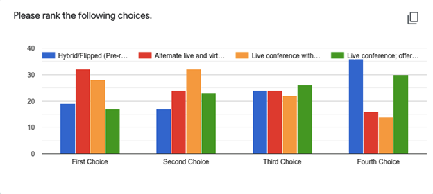 A hearty hello to the ALAO membership! In addition to the overall buzz I acquire at the start of a new semester, I am excited to begin my tenure as your Vice President/President Elect. This means, of course, that I must begin to devote a portion of my thought processes to 2022 and ALAO’s 48th annual conference, which at this early stage is being planned as an in-person event for early November. This decision was made before the COVID-19 pandemic took its current turn in the wrong direction, and in fact was based on the results of the poll that was sent to ALAO members back in June 2021 (see below).